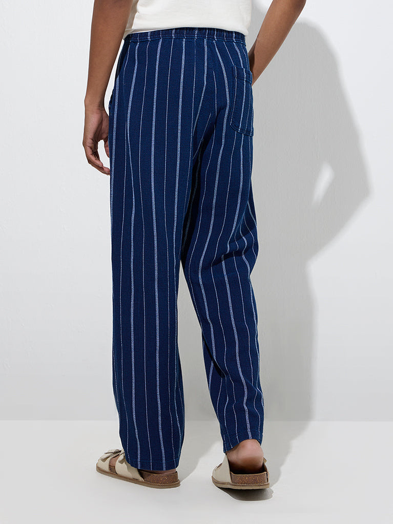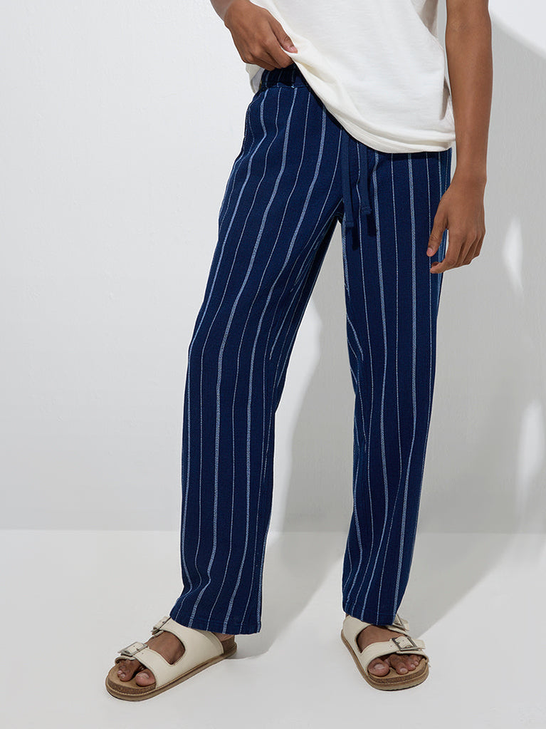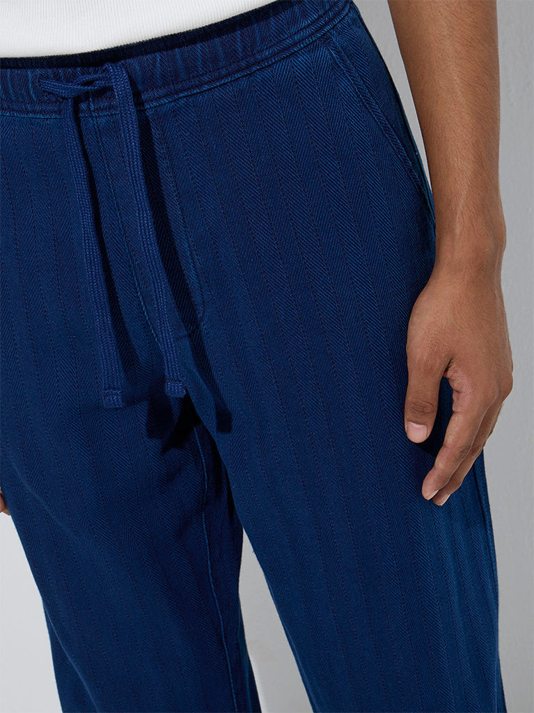 ETA Indigo Stripe Printed Mid-Rise Relaxed-Fit Cotton Chinos