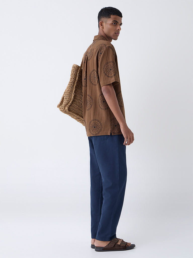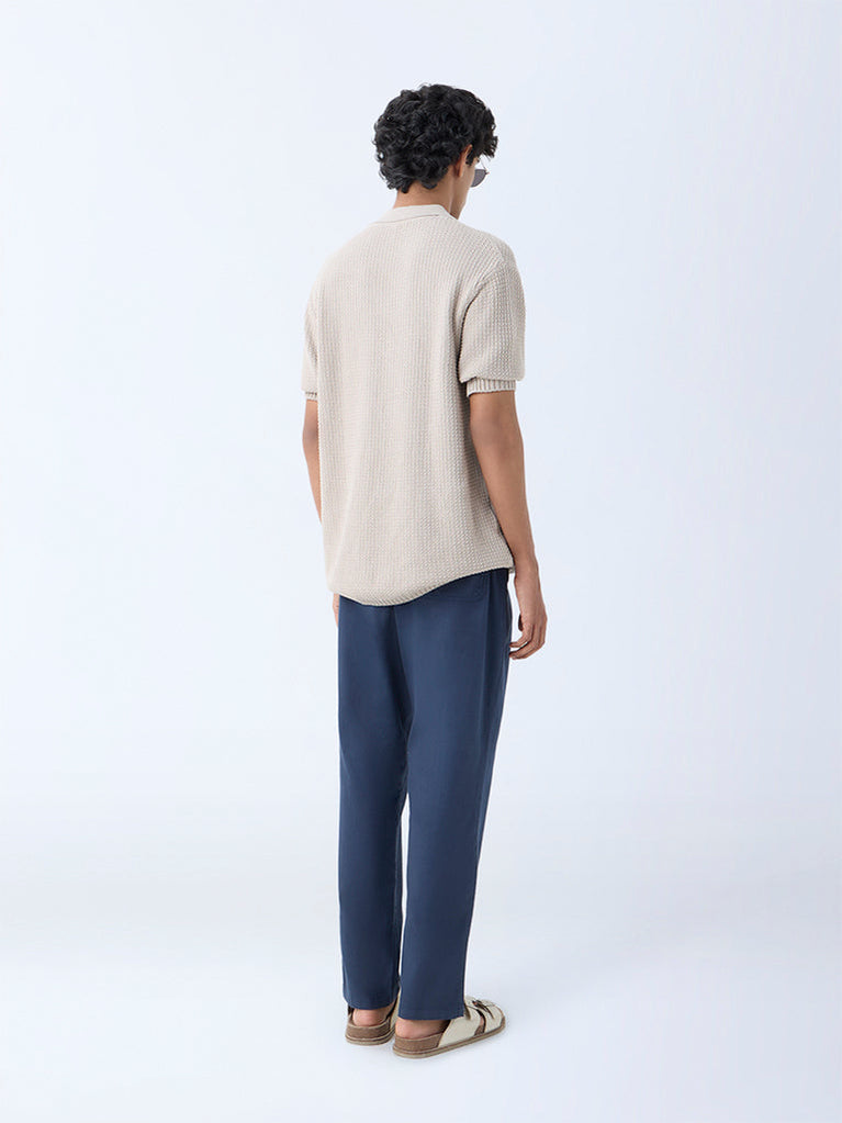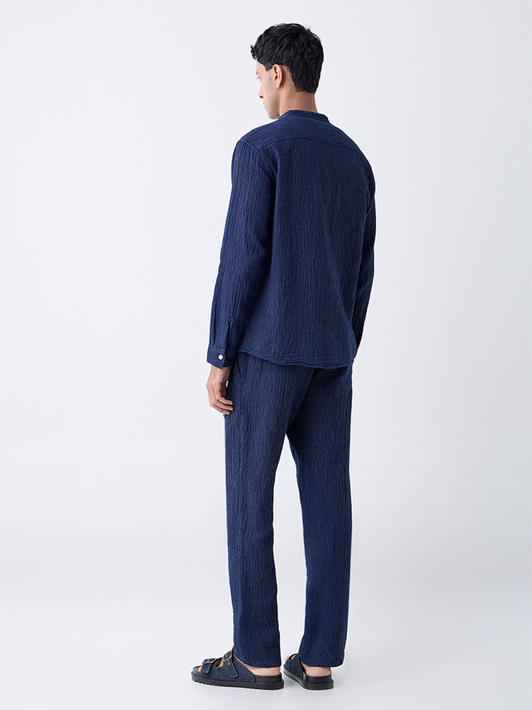 ETA Indigo Textured Relaxed-Fit Mid-Rise Cotton Trousers