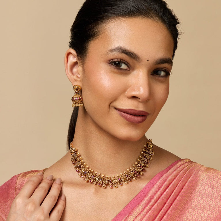 Kushal's Fashion Jewellery Flower Motif Antique TikkaIdeal for those who appreciate the charm and elegance of a decent look! Crafted with precision, our antique tikka boasts a queenly allure that never fails to wow. It's encrusted with brilliantly gleaming synthetic ruby and green-coloured stones, which adds an irresistible sparkle to your regal charm. Known for its decent appearance, it blends the traditional aesthetic with a contemporary sensibility.