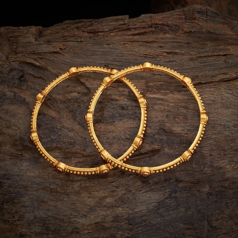 Kushal's Fashion Jewellery Antique BangleLooking for the perfect accessory to make a statement? Look no further than our sensational antique bangle. Crafted from a lightweight copper alloy base metal and featuring a stunning ruby synthetic stone, this bangle is a masterpiece. Its stylish and alluring gold polished finish and intricate design will effortlessly upgrade your look.