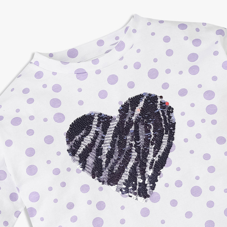 Introducing the Girls Embellished Cotton Pop Sweat Tee, a stylish and comfortable addition to any girl's wardrobe. Crafted from soft cotton knit, this tee is perfect for casual outings or lounging at home.