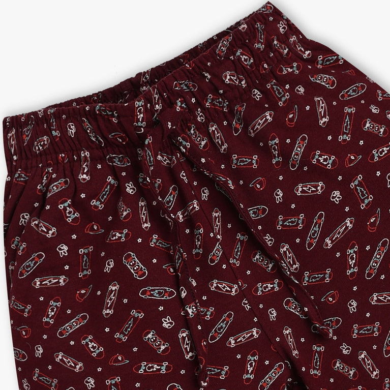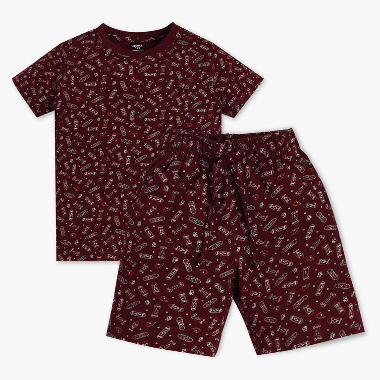 Boys All Over Print Full Length Crew Neck Half Sleeve T-Shirt With Short Sleepwear Set