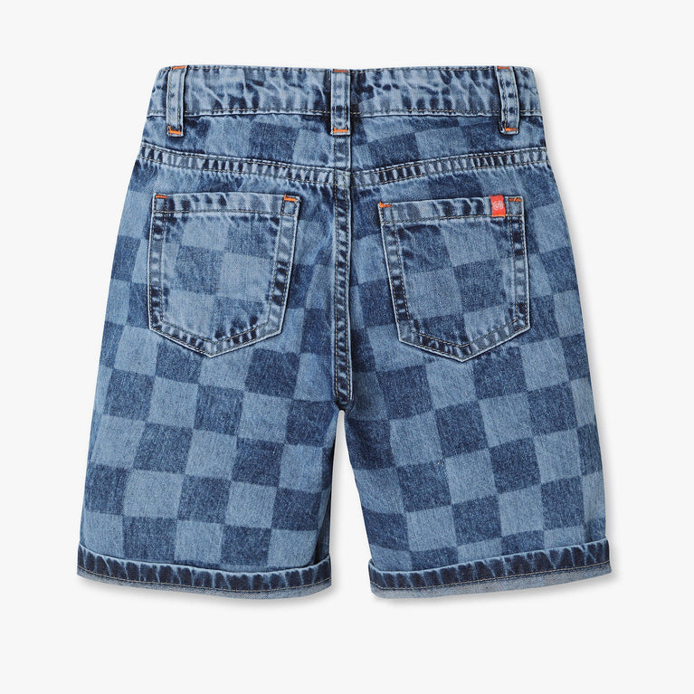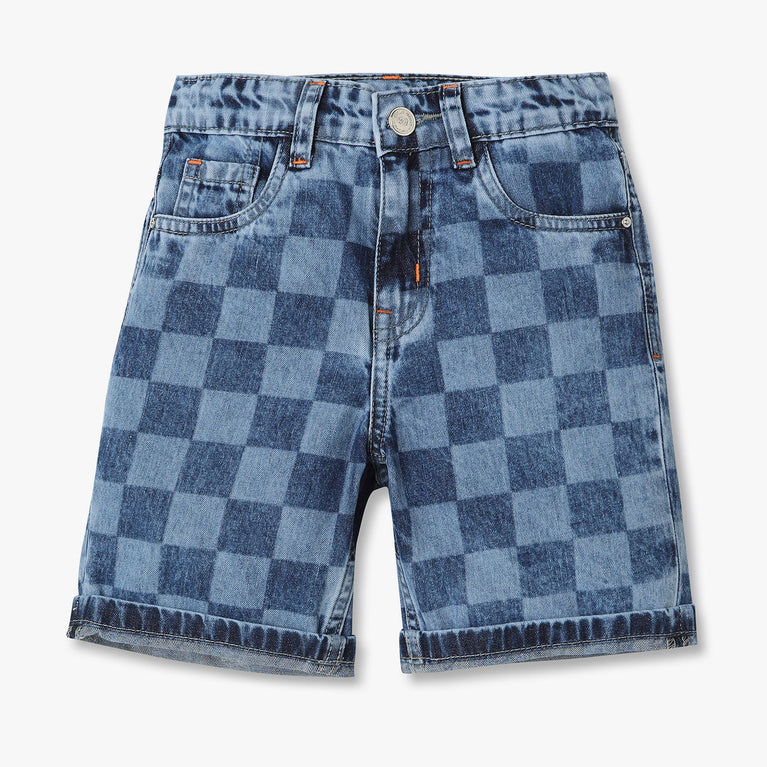 These checkered pattern regular fit shorts has mid rise waist. Made from cotton, your kid's feel comfortable wearing the product.