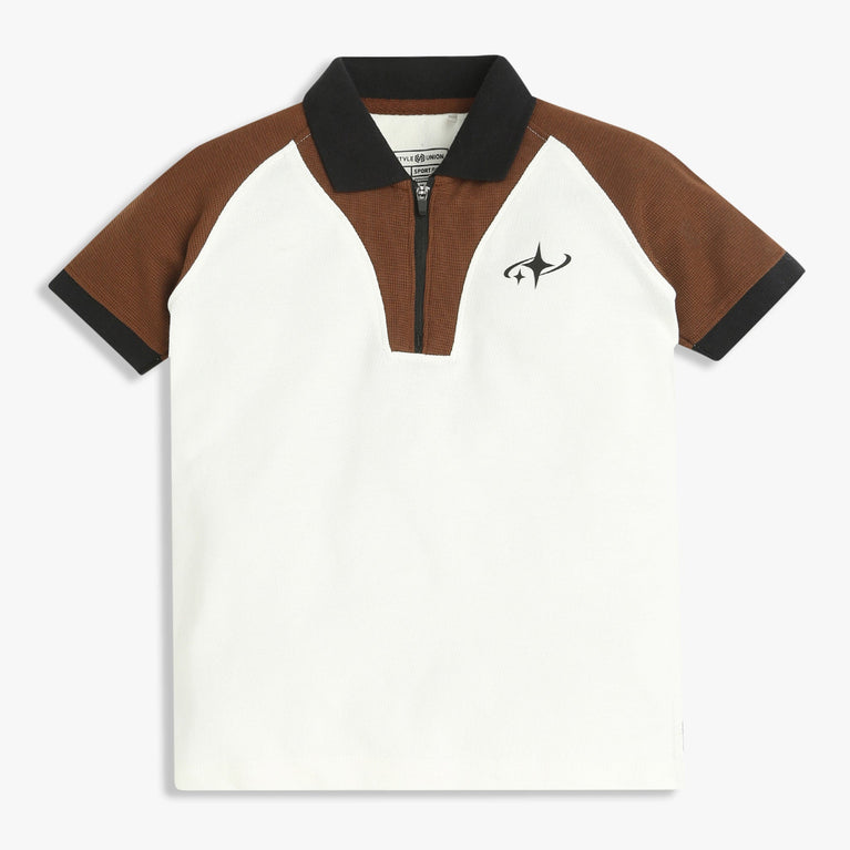 Experience the perfect blend of comfort and style with our Boys Cut And Sew Sport Polo T-Shirt. Crafted from 100% cotton, this t-shirt offers a soft touch against the skin, ensuring all-day comfort for your little one. The knit weave adds a layer of durability, making it ideal for active boys who love to play and explore.