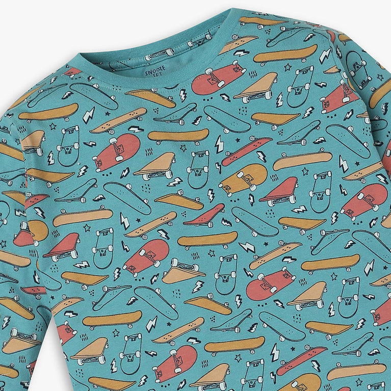 These printed pattern t-shirt with pyjama sleepwear set has crew neck and full sleeve. Made from cotton, your kid's feel comfortable wearing the product.
