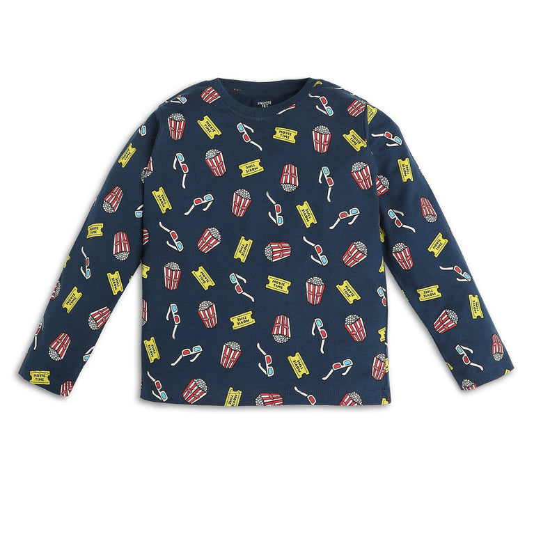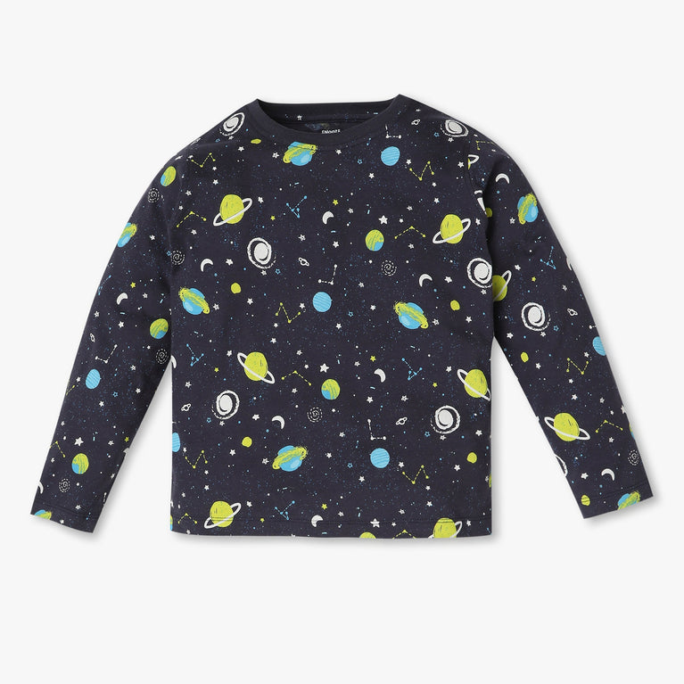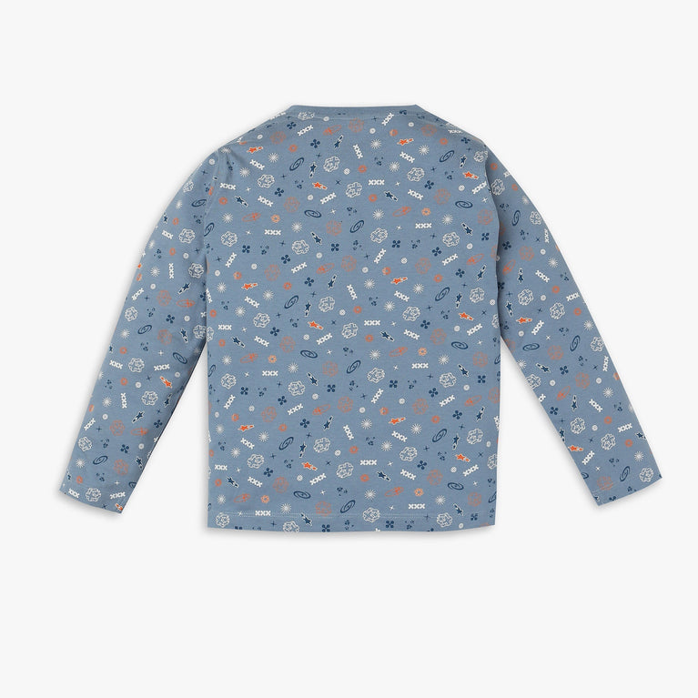 These printed pattern t-shirt with pyjama set has crew neck and full sleeve. Made from cotton, your kid's feel comfortable wearing the product.