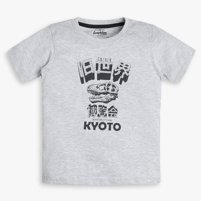 These graphic pattern t-shirt has crew neck and half sleeve. Made from cotton, your kid's feel comfortable wearing the product.