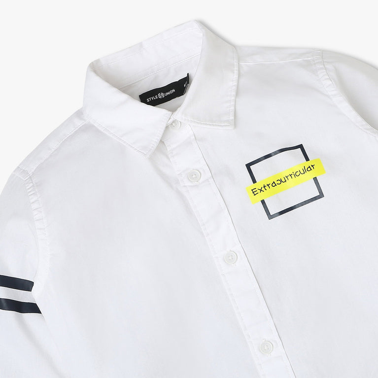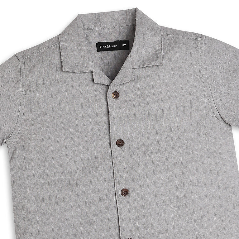 These solid pattern shirt has shirt collar and full sleeve. Made from cotton, your kid's feel comfortable wearing the product.