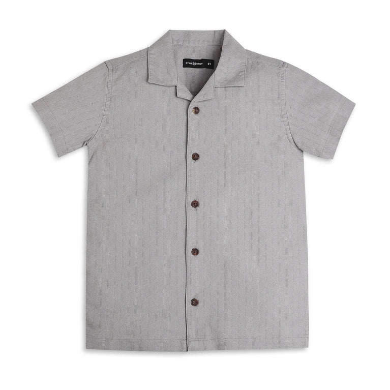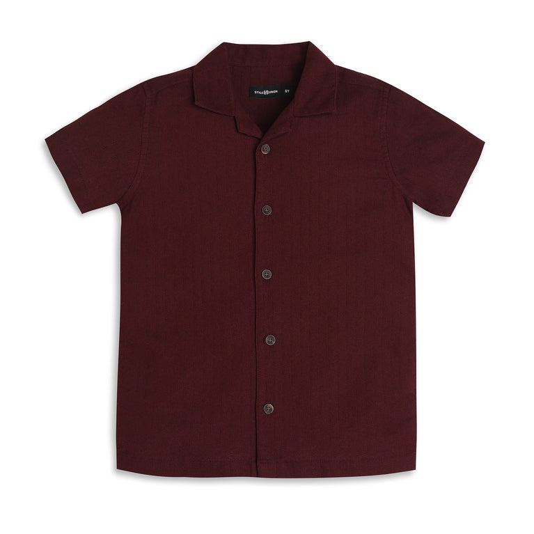 These solid pattern shirt has shirt collar and half sleeve. Made from cotton, your kid's feel comfortable wearing the product.