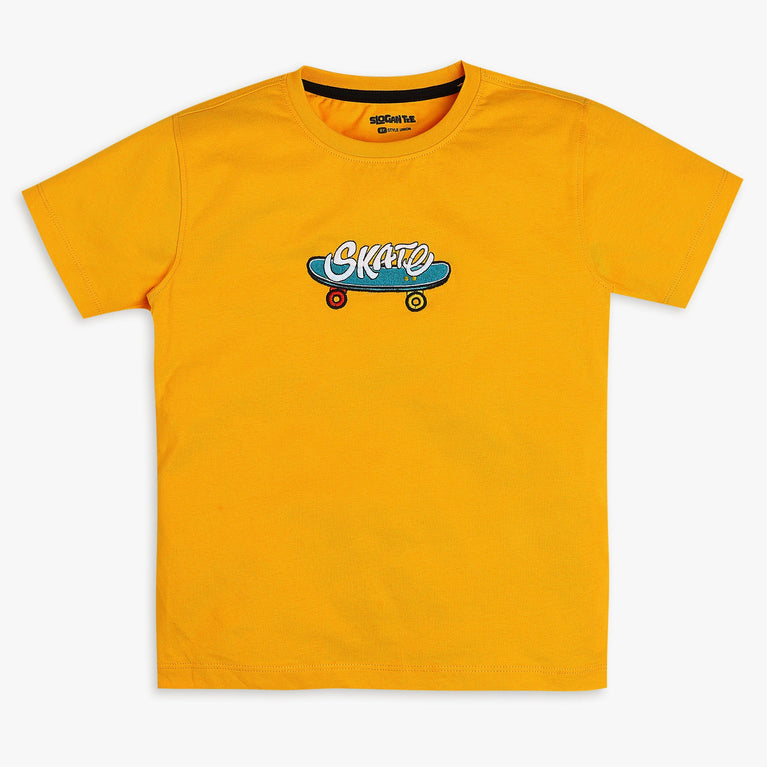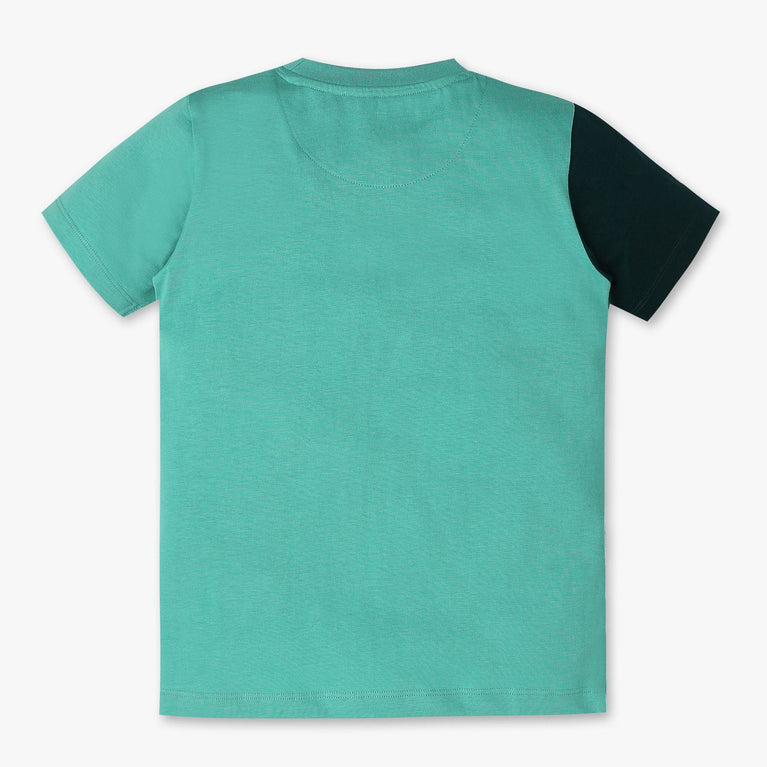 These solid pattern t-shirt has crew neck and half sleeve. Made from cotton, your kid's feel comfortable wearing the product.