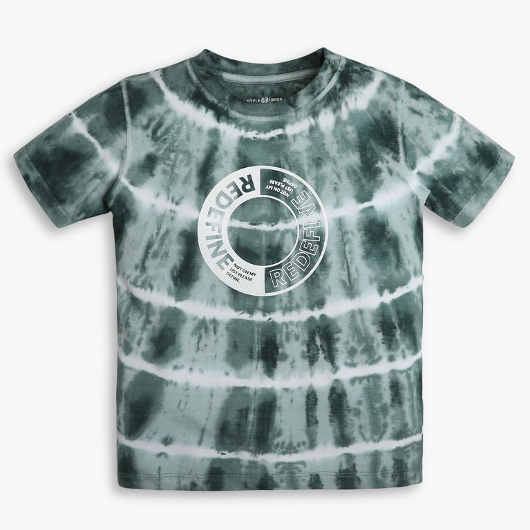 These tie - dye pattern t-shirt has crew neck and half sleeve. Made from cotton, your kid's feel comfortable wearing the product.