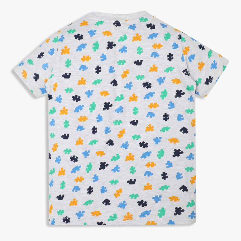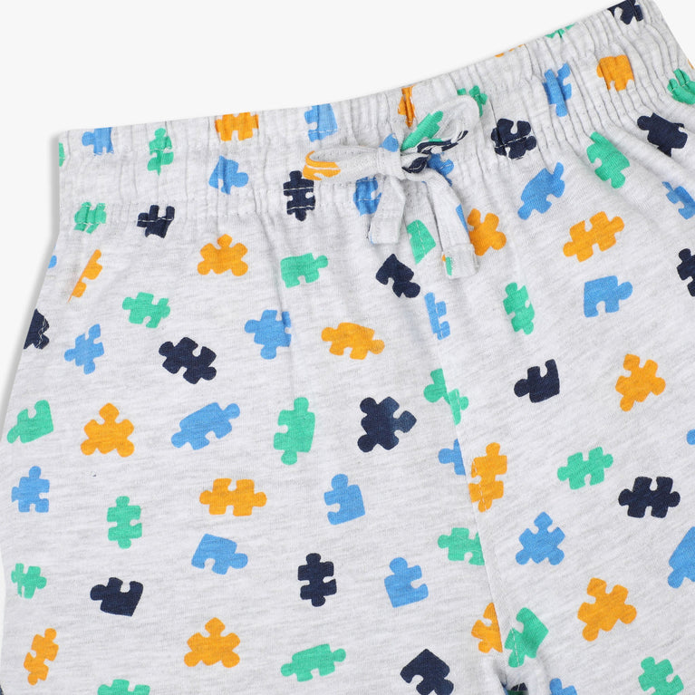 Experience the ultimate in comfort and style with our Boys Snooze Set, featuring a half sleeve tee and shorts. Crafted from 100% cotton, this set promises a soft touch against the skin, ensuring a restful night's sleep or a relaxed day at home. The all-over print adds a playful touch, making it a favorite for young ones.