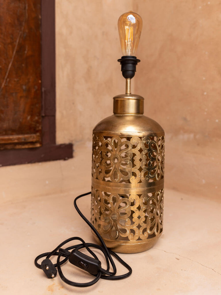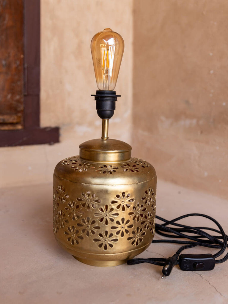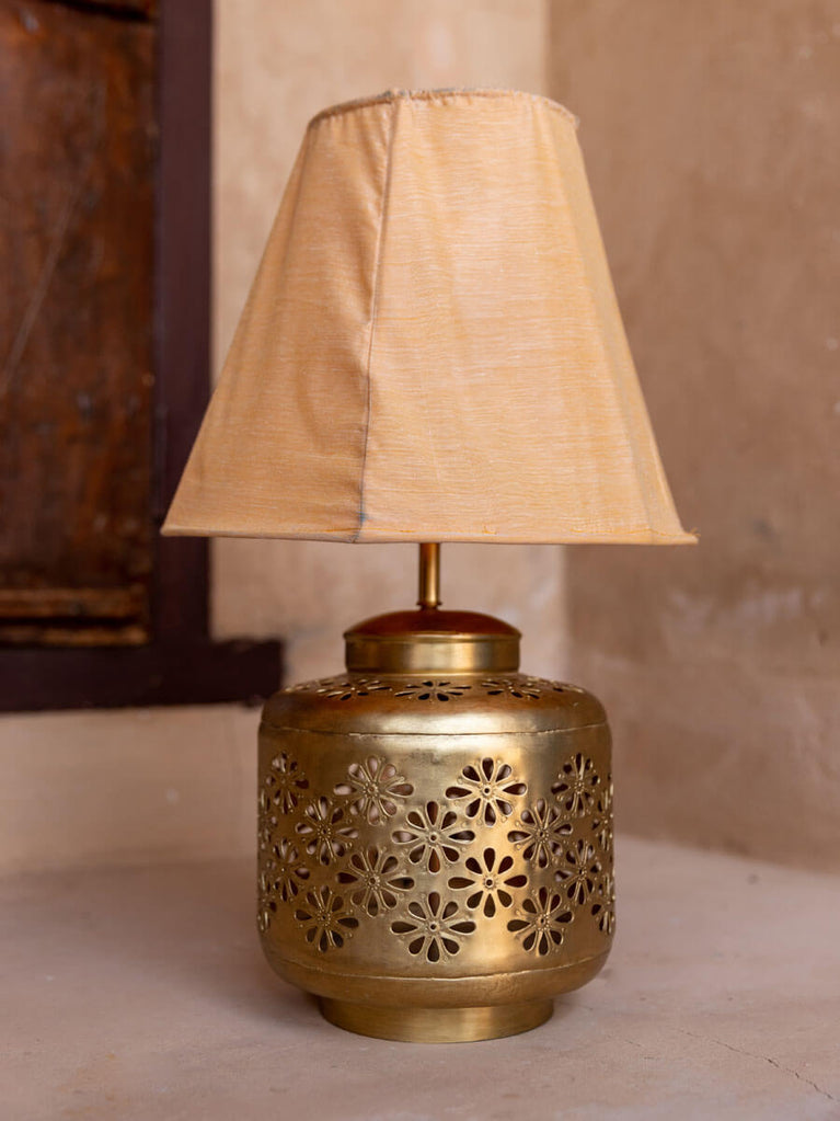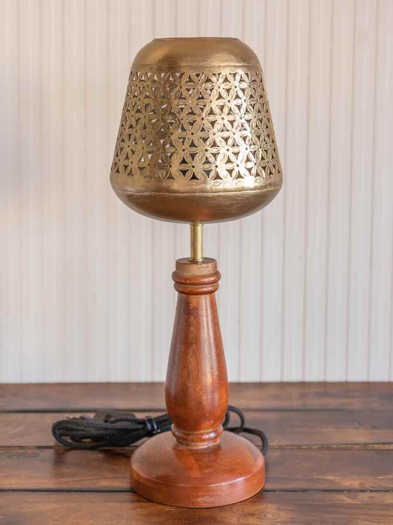 Gazal Metal Cutwork Wooden Base Table Lamp