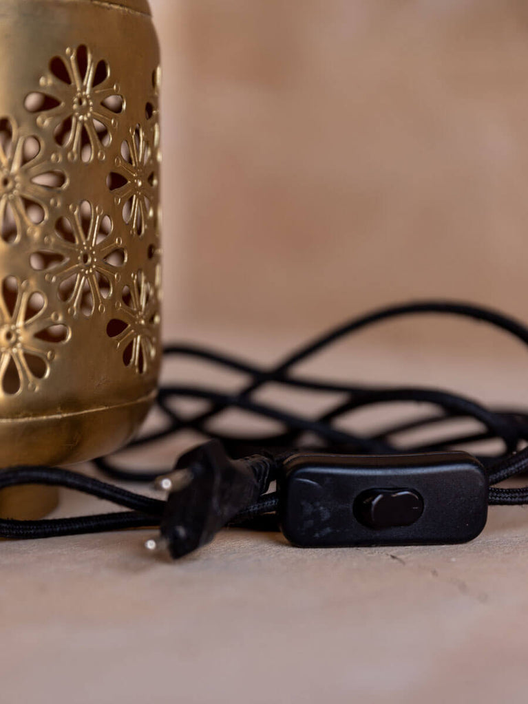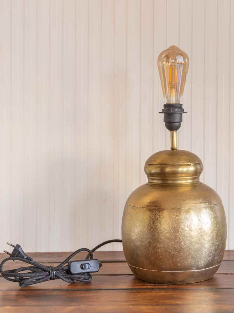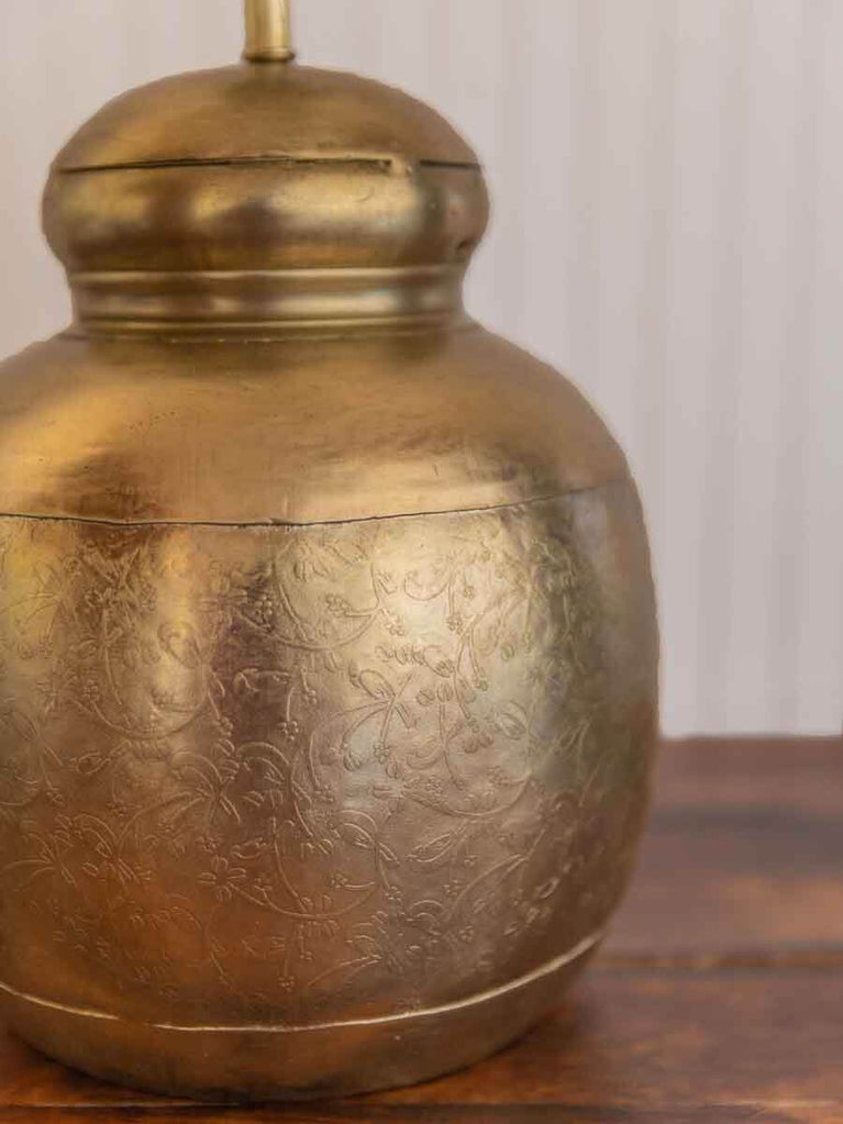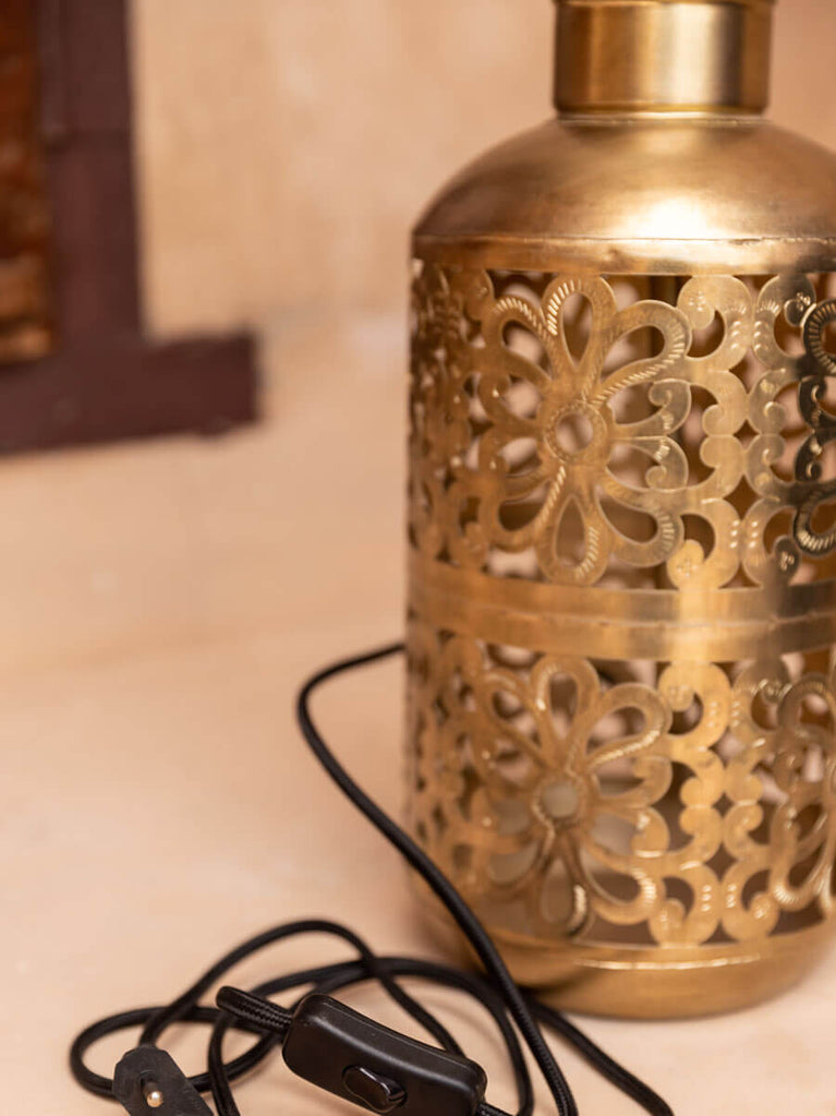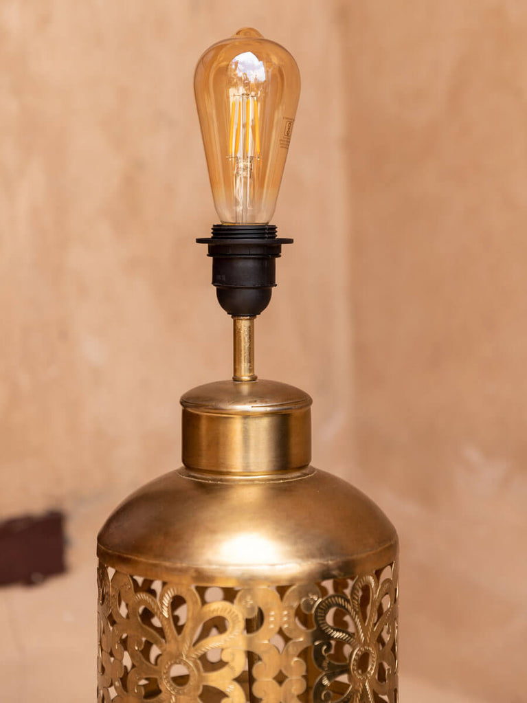 Gazal Metal Cutwork Wooden Base Table Lamp