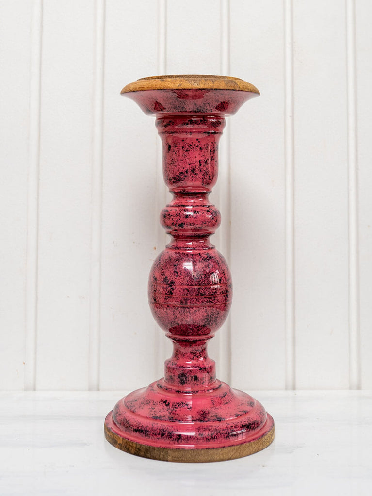 Set of 2 - Jwala Wooden Base Cutwork Metal Candle Stand