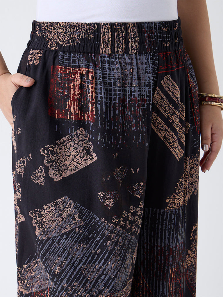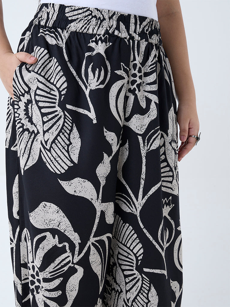 Bring a fresh twist to your festive look with these black ethnic pants from Diza. The oversized floral prints finessed with a soft, stretchy waistband offer both style and comfort, making them ideal for long hours of wear.