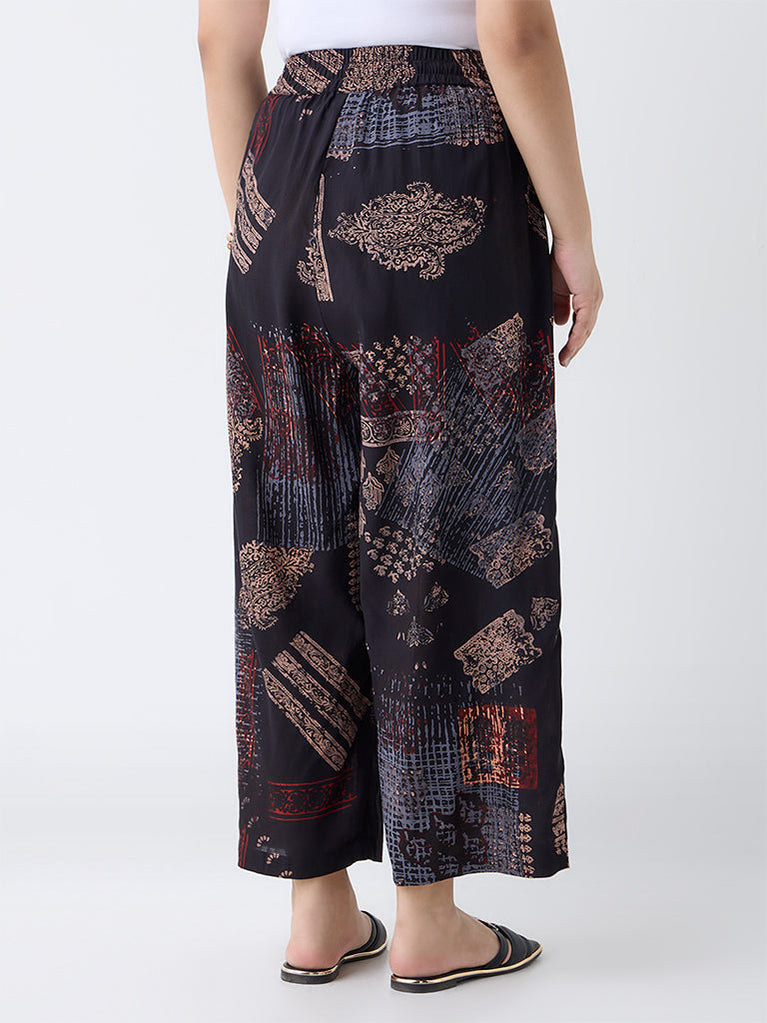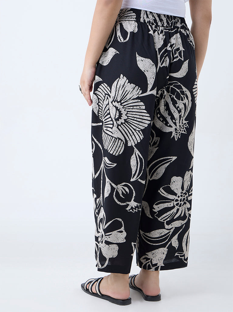 Diza Black Schiffli Embroidered Cotton Palazzos