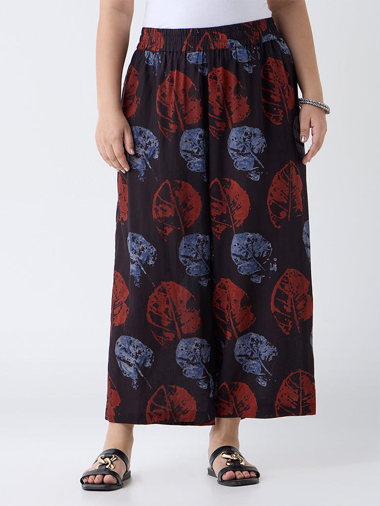 These black palazzos from Diza are elevated with delicate schiffli embroidery along the hem, adding a handcrafted charm to everyday ethnic dressing. Spun from a cotton-rich fabric for breathable comfort, they feature an elasticated waistband that ensures a secure fit.