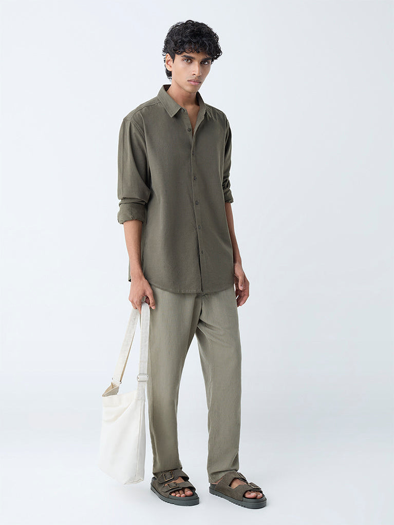 ETA Olive Solid Relaxed-Fit Cotton-Blend Shirt