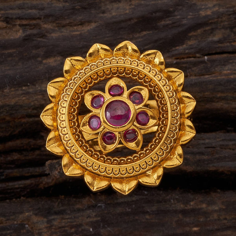 Kushal's Fashion Jewellery Flower Motif Antique Finger RingIt is time to bedazzle others with our unique antique finger rings. Our Lord Ganesh-embossed design finger ring offers a blessed outlook. The copper alloy ensures the sturdiness of the product. The synthetic stones add an aesthetic charm to the rings. Choose our ruby coloured rings for your exceptional look.