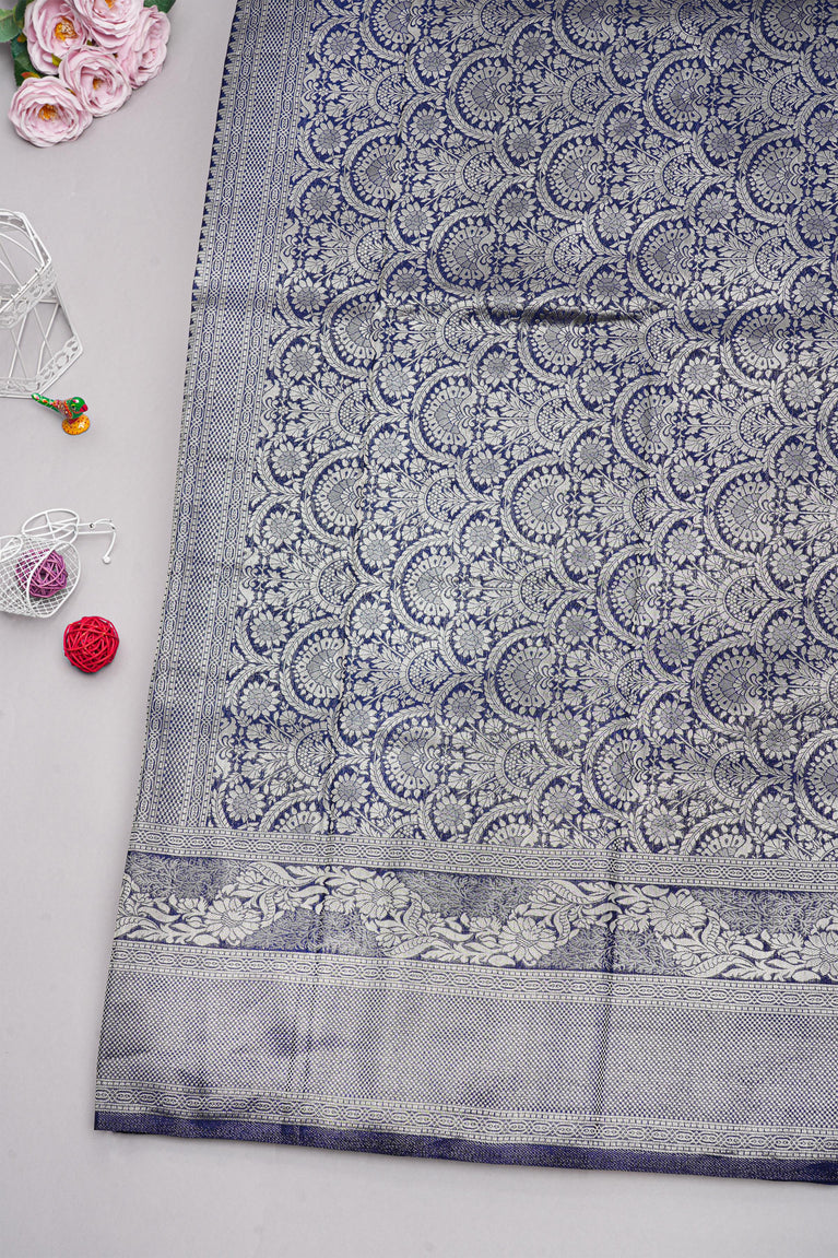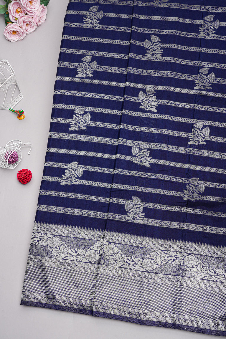 NAVY BLUE and GOLD FLORALS SILK Saree with FANCY