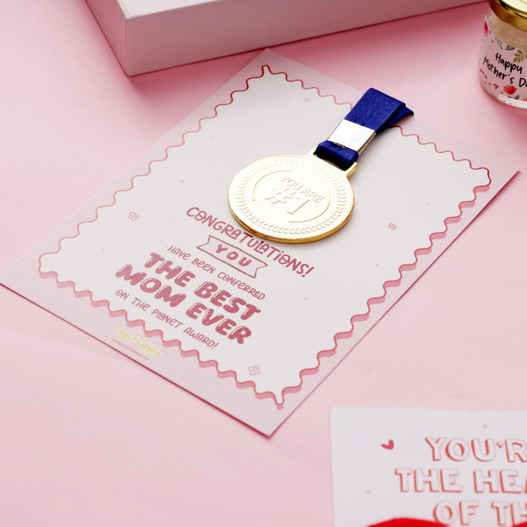 For the woman who has been your second mom, your silent supporter, and your unexpected best friend!This Mother’s Day, celebrate your mother-in-law with a hamper full of love, laughter, and heartfelt surprises.The hamper includes: Window Frame For Moms - For the mom who’s giving it her all! A unique photo frame that opens up like a window. It is customisable with the your mom's favorite picture.Mirror Card for Mom - Add a touch of magic to your greeting card and express how much your mother-in-law means to you. This special greeting card is designed with a mirror attached to it so that when your mother-in-law opens the card, she will see her own face reflecting on it.Medal with Certificate - Moms deserve all the appreciation in the world for everything they do. Give her the ultimate compliment with a certificate and a medal (yes, a real medal) that certifies your mom-in-law as the Best Mom Ever.A Sash - Mothers are the real stars! Make her feel like one with this adorable world's best mom sash.Best Mom Ever Mug - Surprise your mother-in-law with a special mug designed to always remind her that she's the best mom in the world.Best Mom Table Top - An intricate work of art to adorn your mother-in-law's bedroom with. Made with lots of love and creativity, this gift tells your mom-in-law everyday that she is the best mom in the world!Specifications:Size of the Hamper Box - 25 x 10.5 x 19.5 cm Size of the Mirror Card - 10 x 7 inchesMug Capacity - 330mlSize of the Window Frame - 4 x 4 inchesSize of the Table Top - 15 x 15 cms