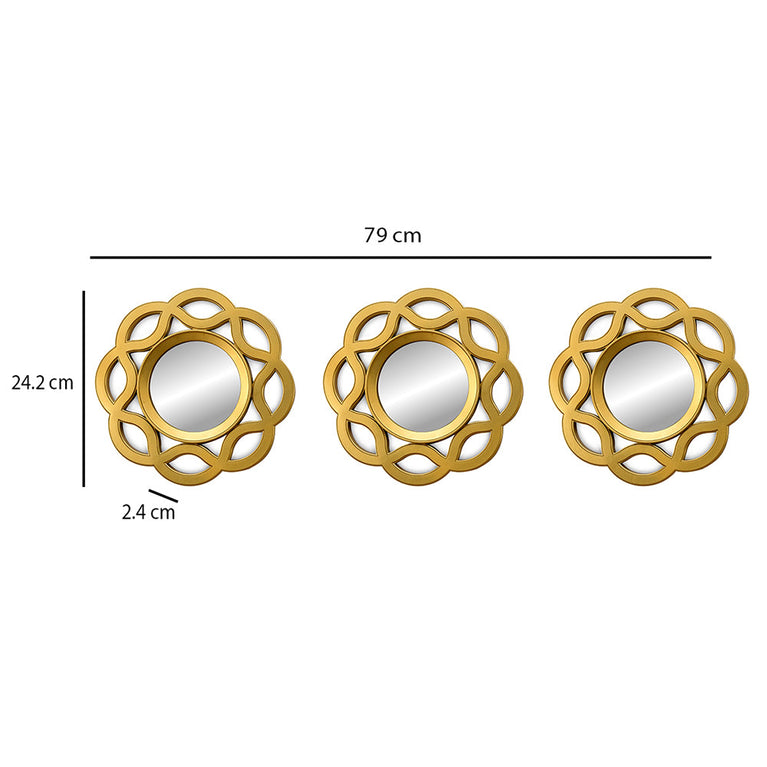 Floral Decorative Wall Mirrors Set of 3 (Gold)