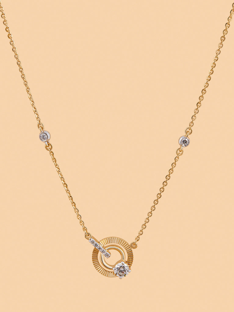 Enjoy modern elegance with this dual circle lab diamond pendant necklace. Made in gold vermeil, it offers a sleek design that complements any style.