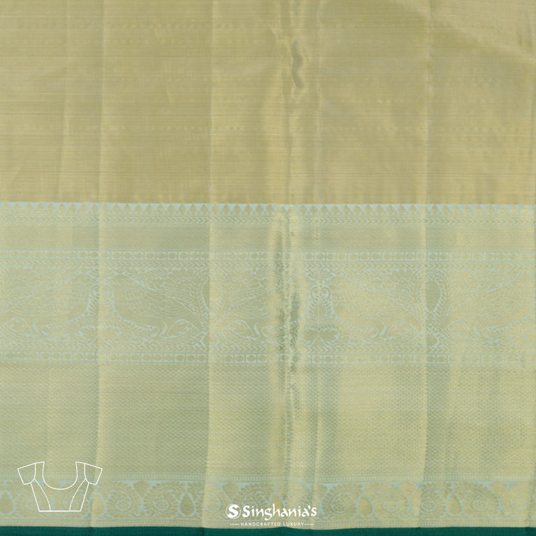 Embrace the serene vibe by draping this alluring Golden Crest Dual Tone Kanjivaram Silk Saree with Floral Jaal Weaving all over, accentuated with floral zari woven border and pallu.