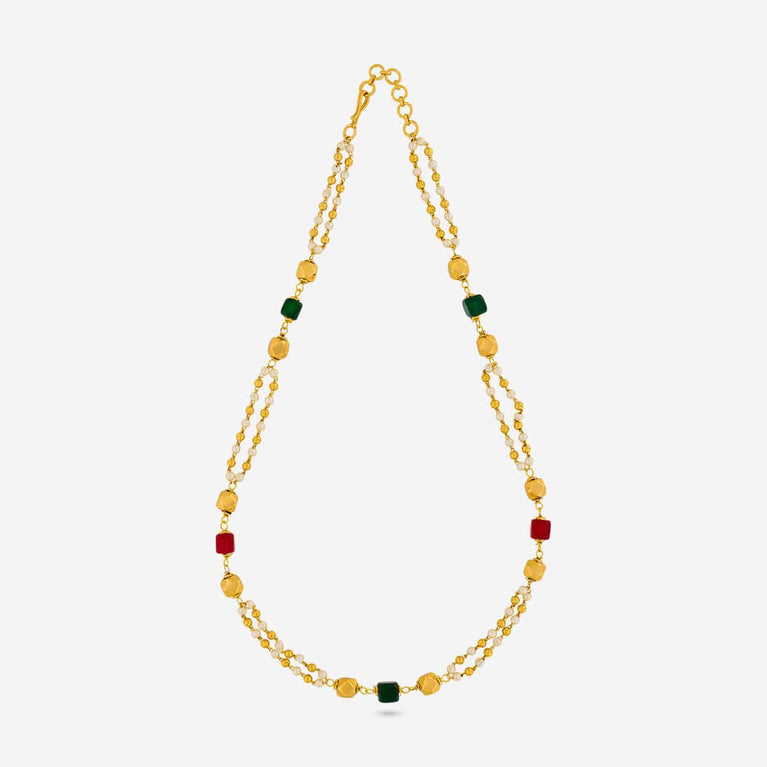 Beaded Design Antique ChainUpgrade your look with this antique mala, a short necklace featuring green or ruby-green synthetic stones set in a gold polish. Perfectly designed to pair with Indo-Western outfits, this elegant piece adds a touch of sophistication and charm, making it an ideal accessory for both casual and special occasions.