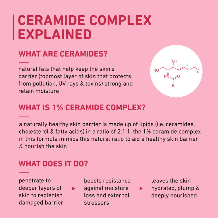 * whipped, creamy texture * ceramide complex mimics the skin's natural ratio of 2:1:1 * non-sticky & non-greasy * gentle & non-irritating formula * clinically tested to suit sensitive skin