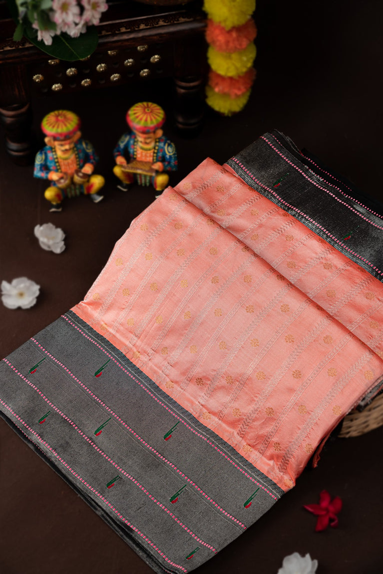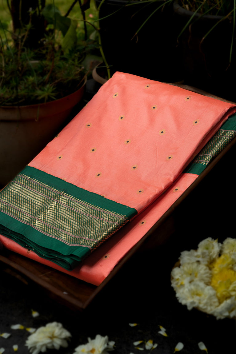 Mandir Pink & Coral Venkatagiri Buttis Saree