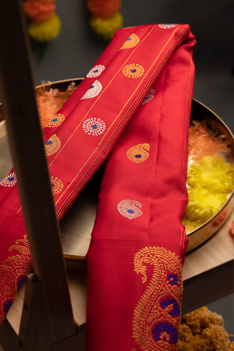 Mandir Red & Pink Kanchipuram Buttis Saree