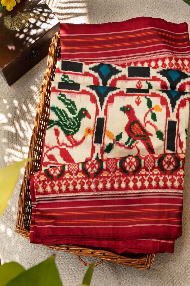 Mandir Yellow & Maroon Ikat Ikat Saree