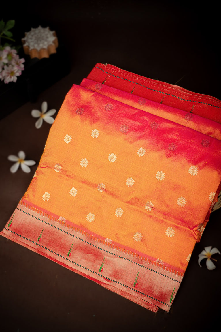 Mandir Tangy Orange & Red Paithani Buttis Saree