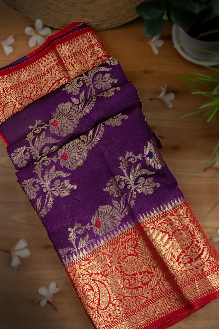 Mandir Violet & Maroon Fancy Floral Jaal Saree