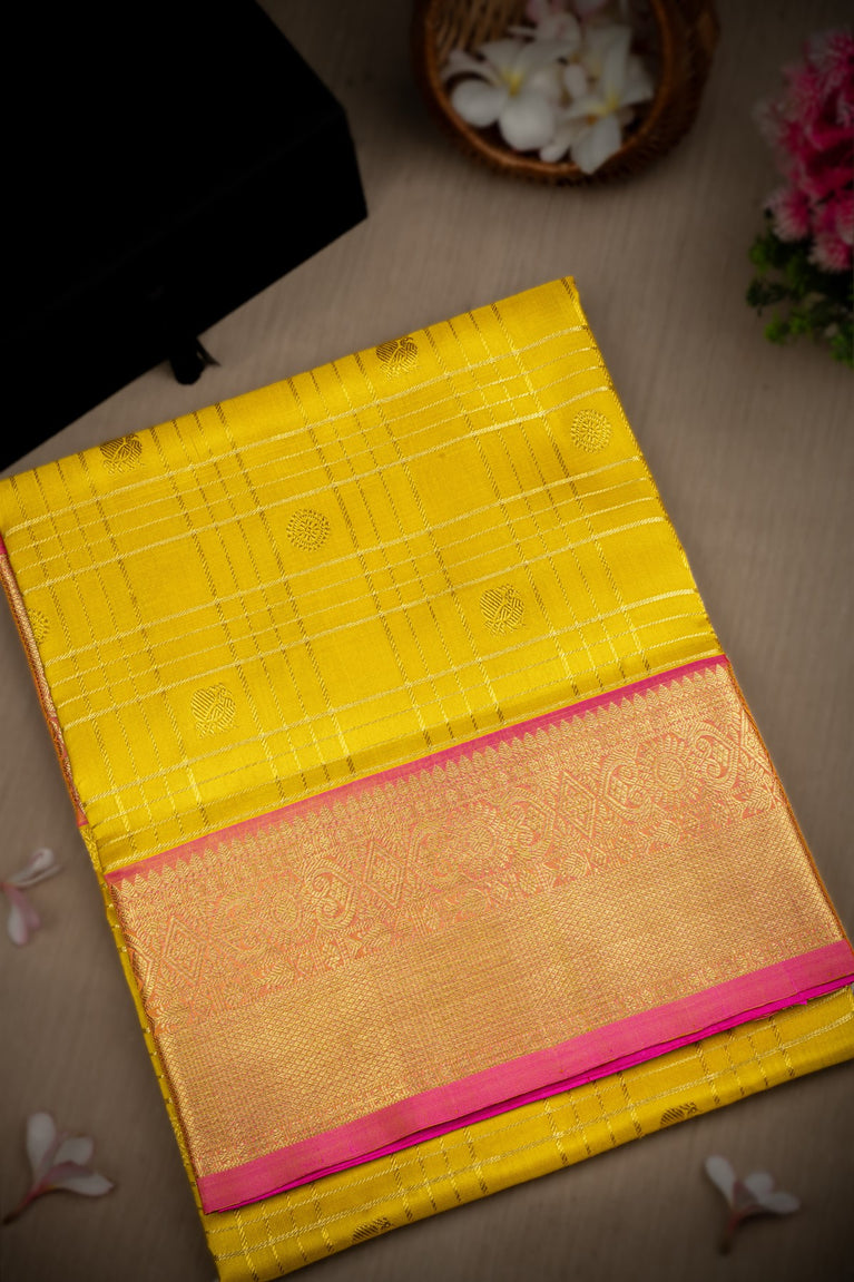 Mandir Yellow & Pink Kanchipuram Jaal Saree