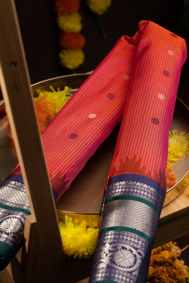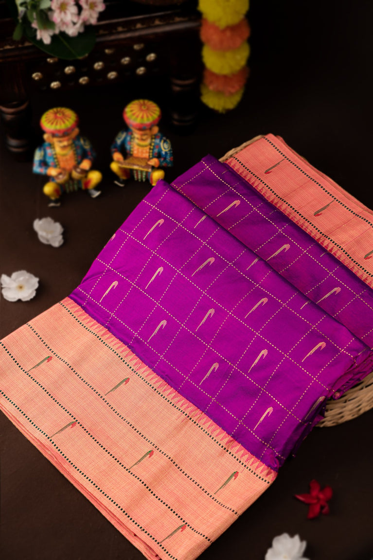 Mandir Magenta & Blush Pink Paithani Checks Saree