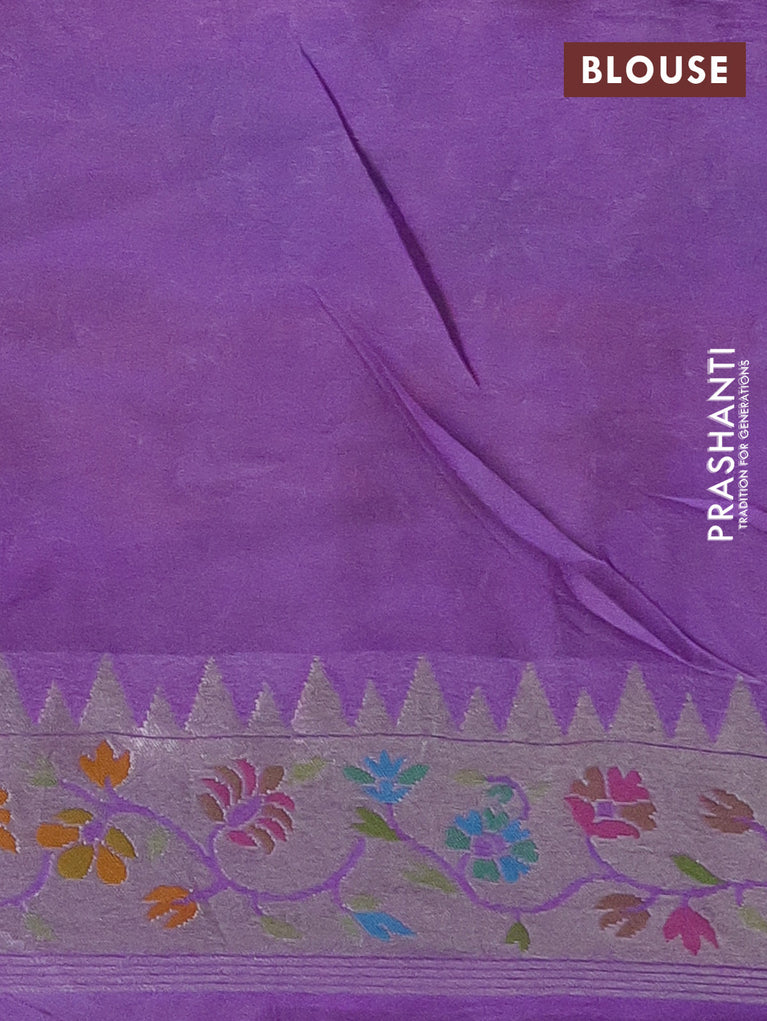 Banarasi semi raw silk saree lavender with allover silver zari woven paithani weaves and woven border