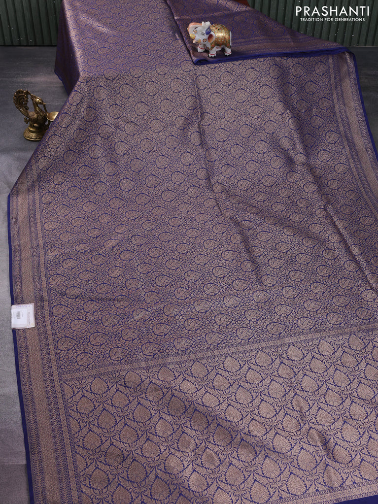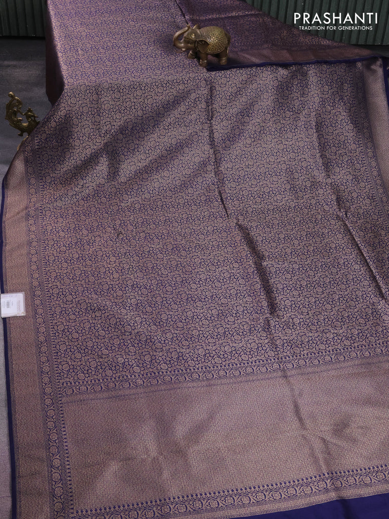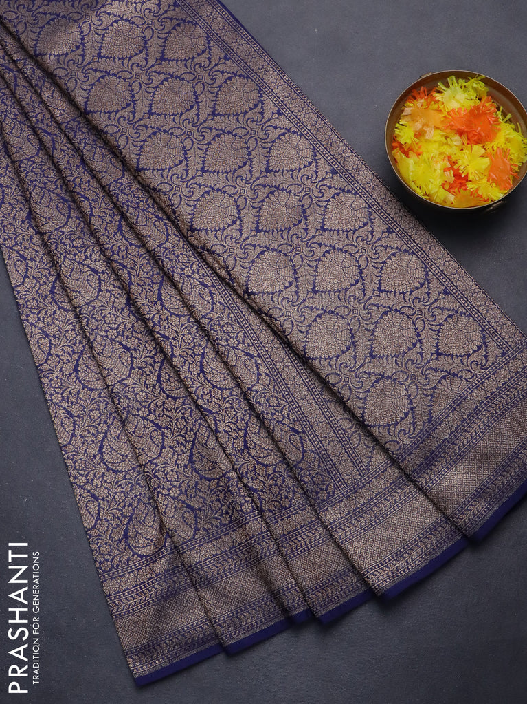 Banarasi semi silk saree blue with allover thread & zari weaves and woven border