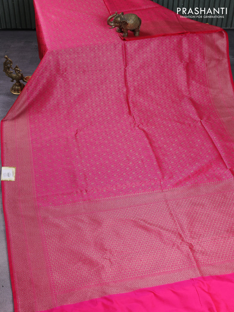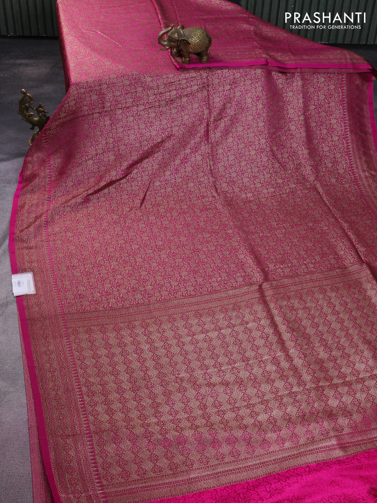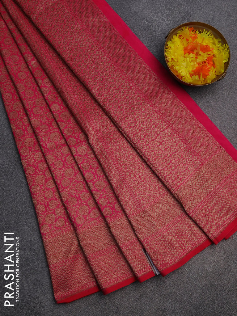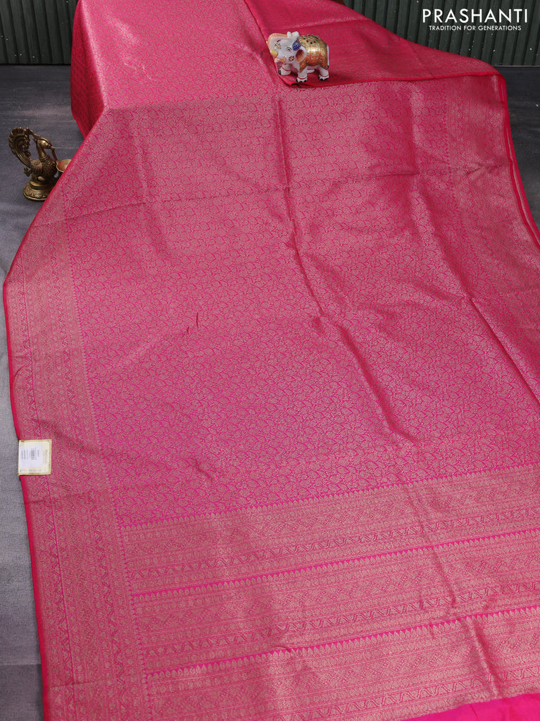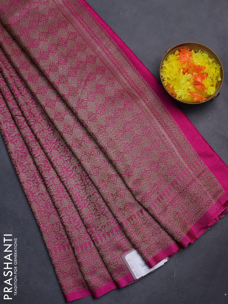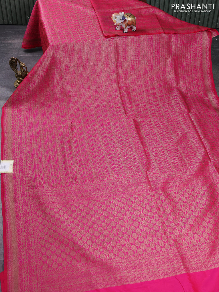 Banarasi semi silk saree pink and violet with allover thread & zari weaves and woven border