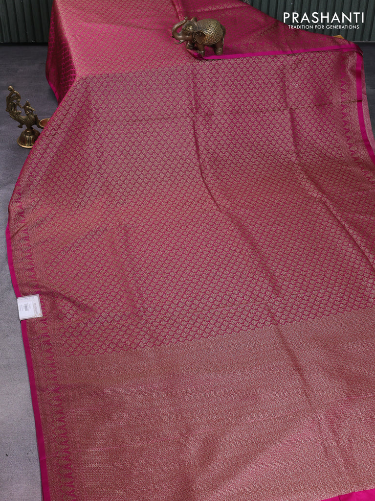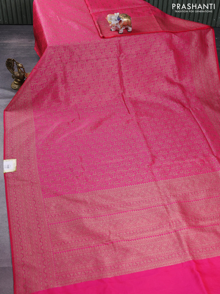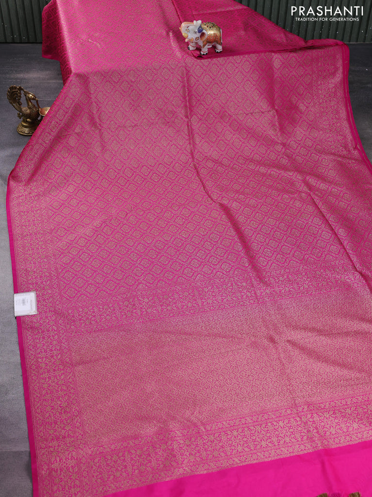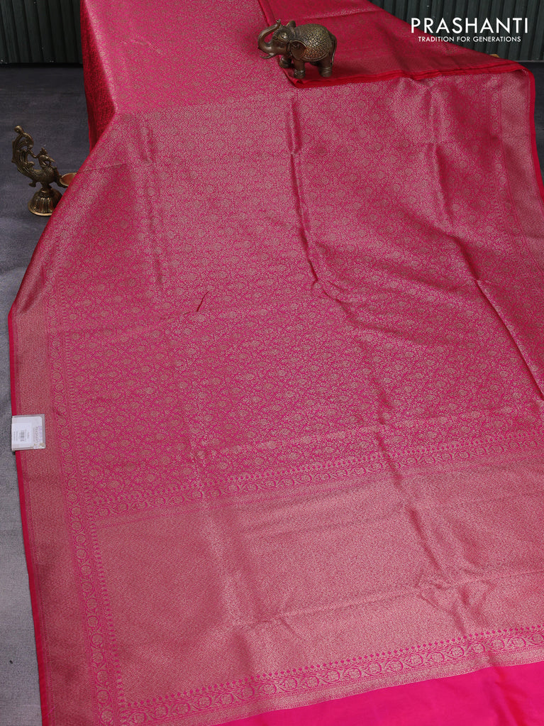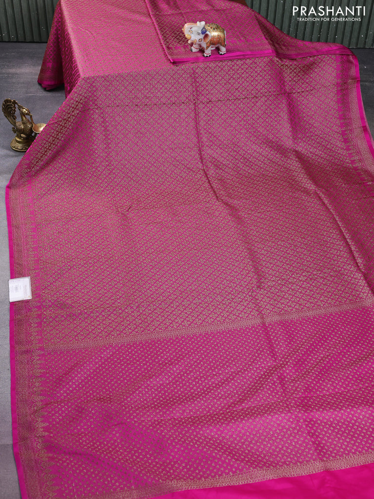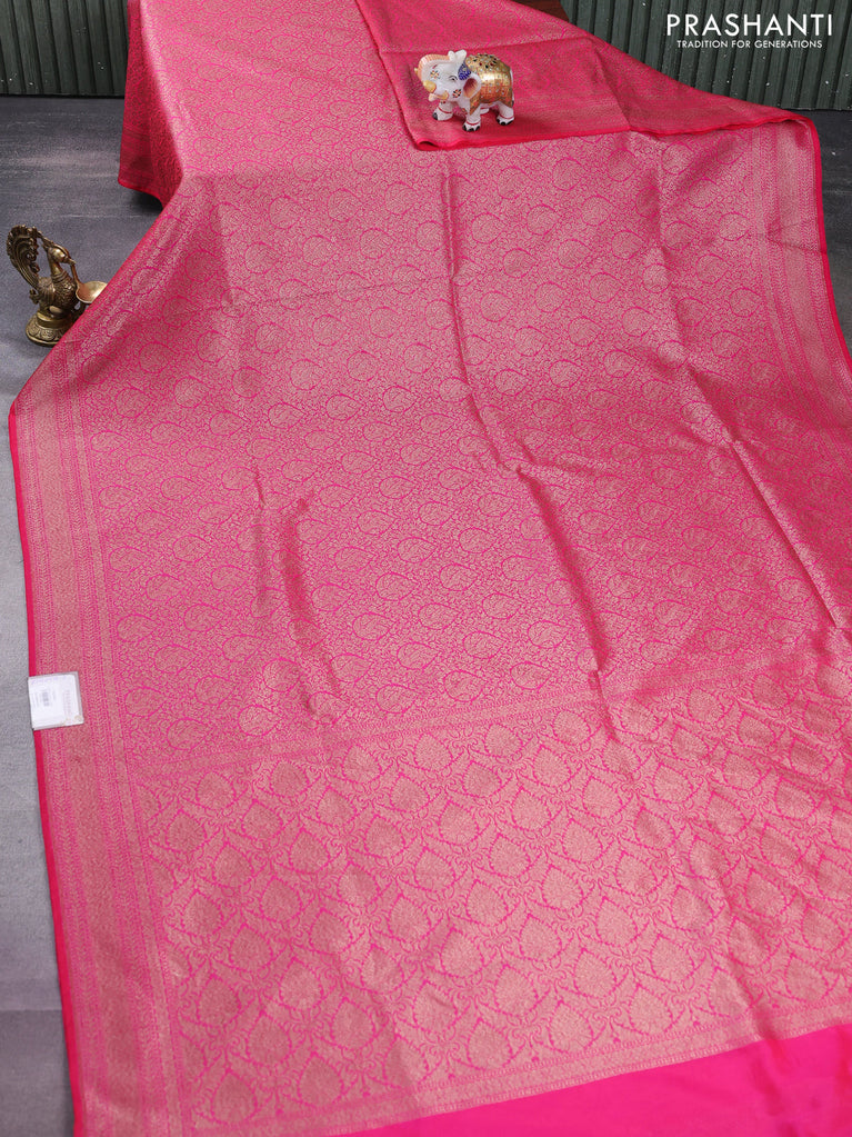 Banarasi semi silk saree pink and violet with allover thread & zari weaves and woven border