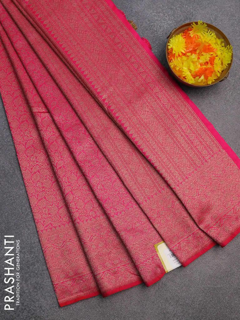Banarasi semi silk saree pink with allover thread & zari weaves and woven border