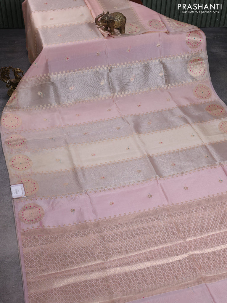 Banarasi tissue semi silk saree beige and baby pink with zari weaves & buttas and zari woven butta border