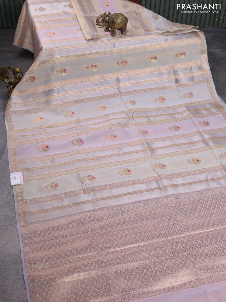 Banarasi tissue semi silk saree beige and pastel lavender with zari weaves & floral buttas and small zari woven border