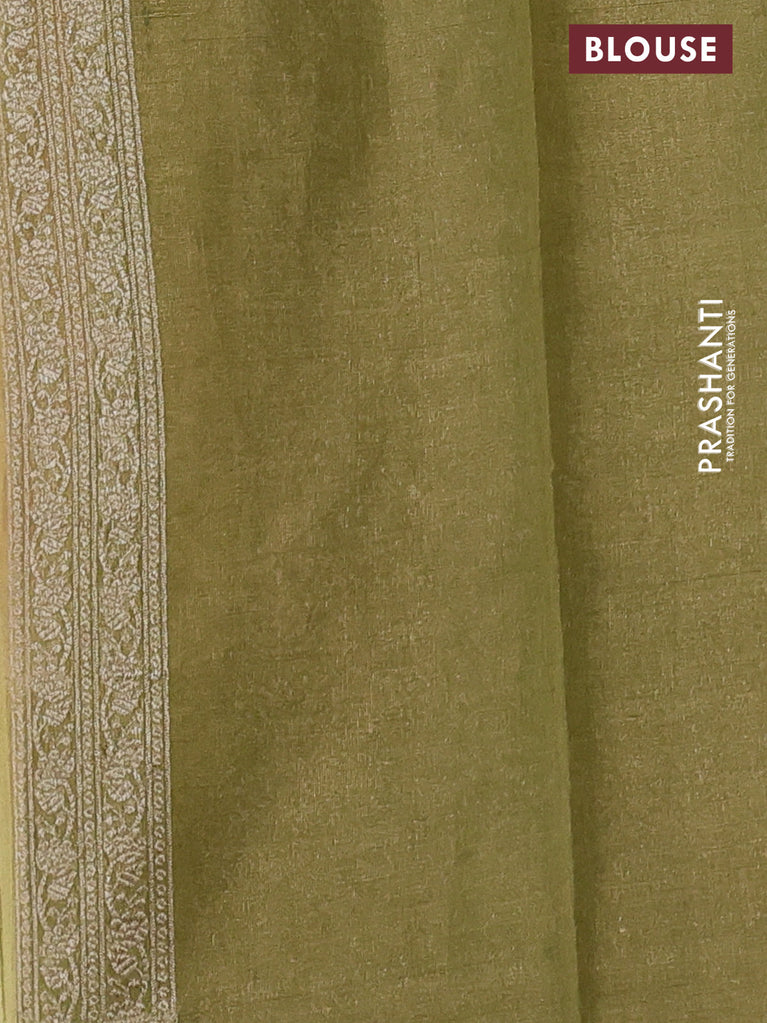 Banarasi tissue silk saree greyish green with allover silver & gold zari weaves and zari woven border