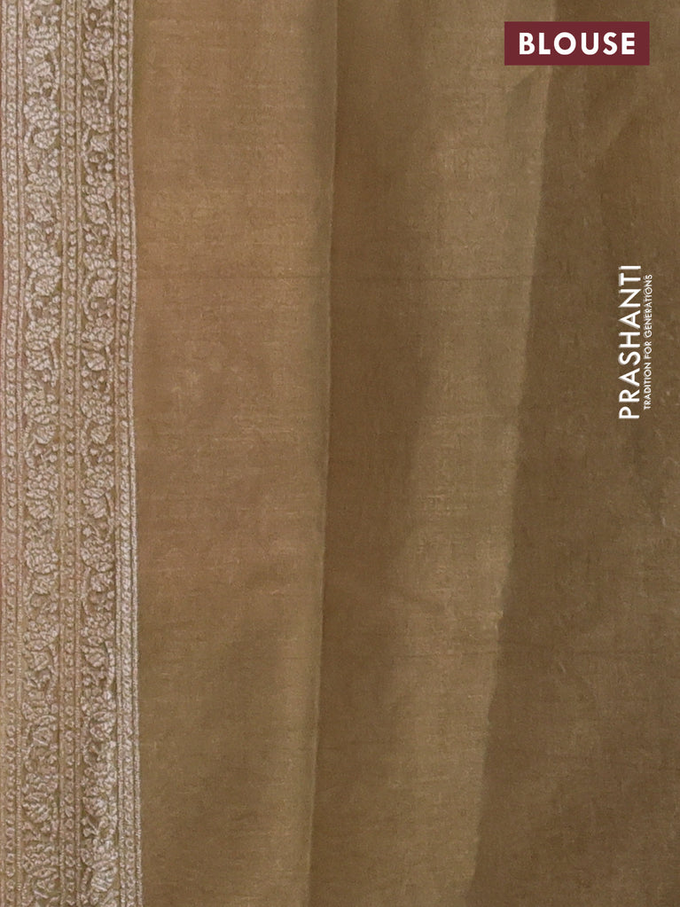 Banarasi tissue silk saree dark sandal with allover silver & gold zari weaves and zari woven border