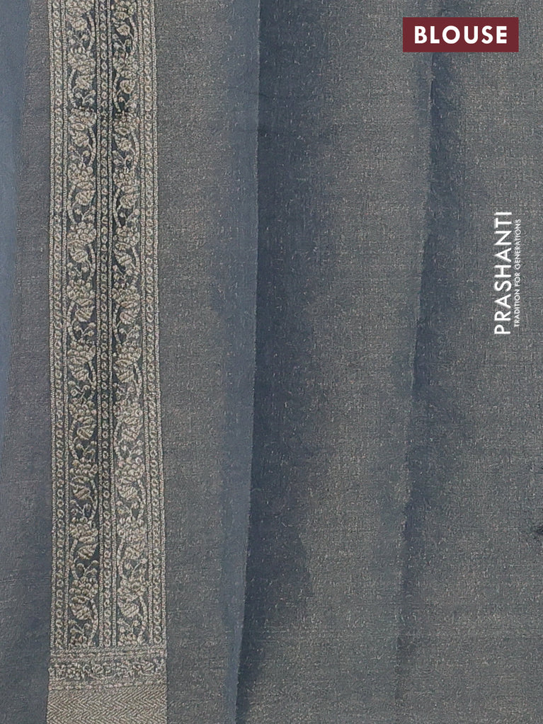 Banarasi tissue silk saree grey and black with allover zari woven brocade weaves and zari woven border