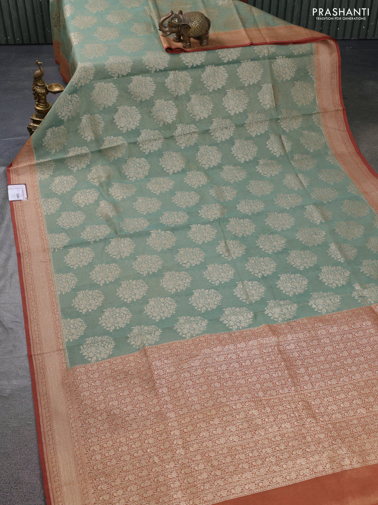Banarasi tissue silk cotton saree rust shade and green shade with zari woven buttas and woven border