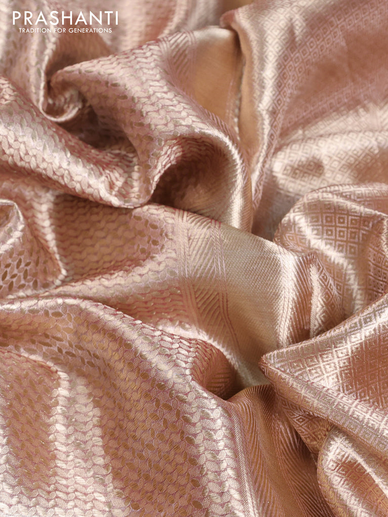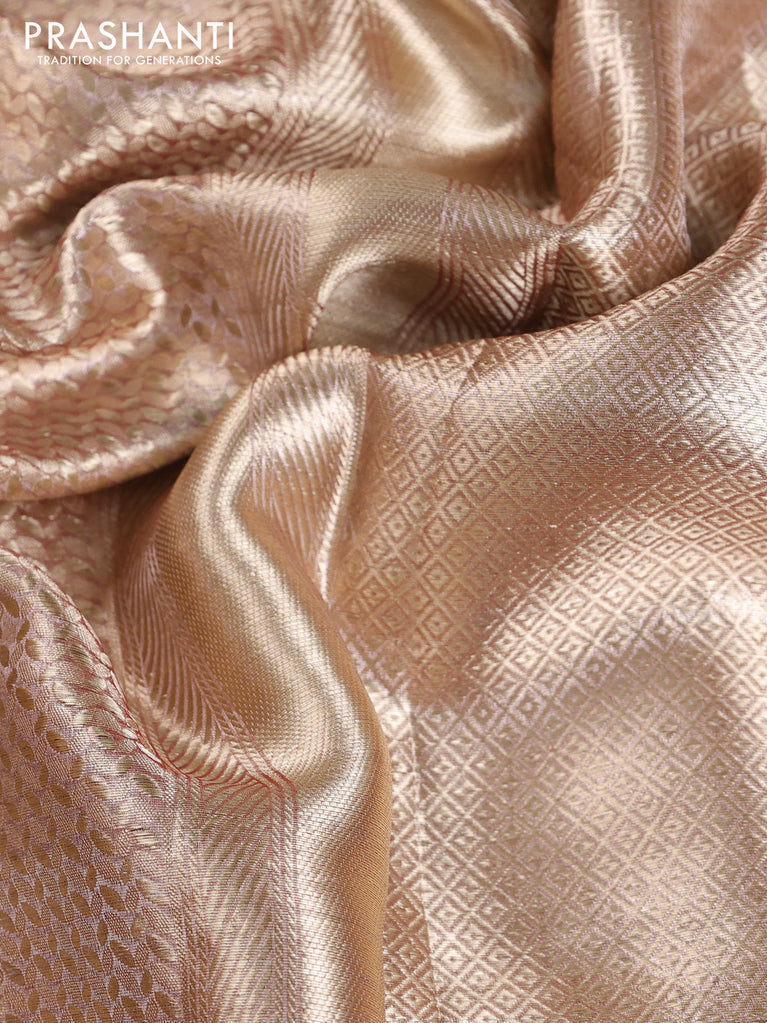 Banarasi tissue silk saree gold and pink with allover zari woven brocade weaves and zari woven border